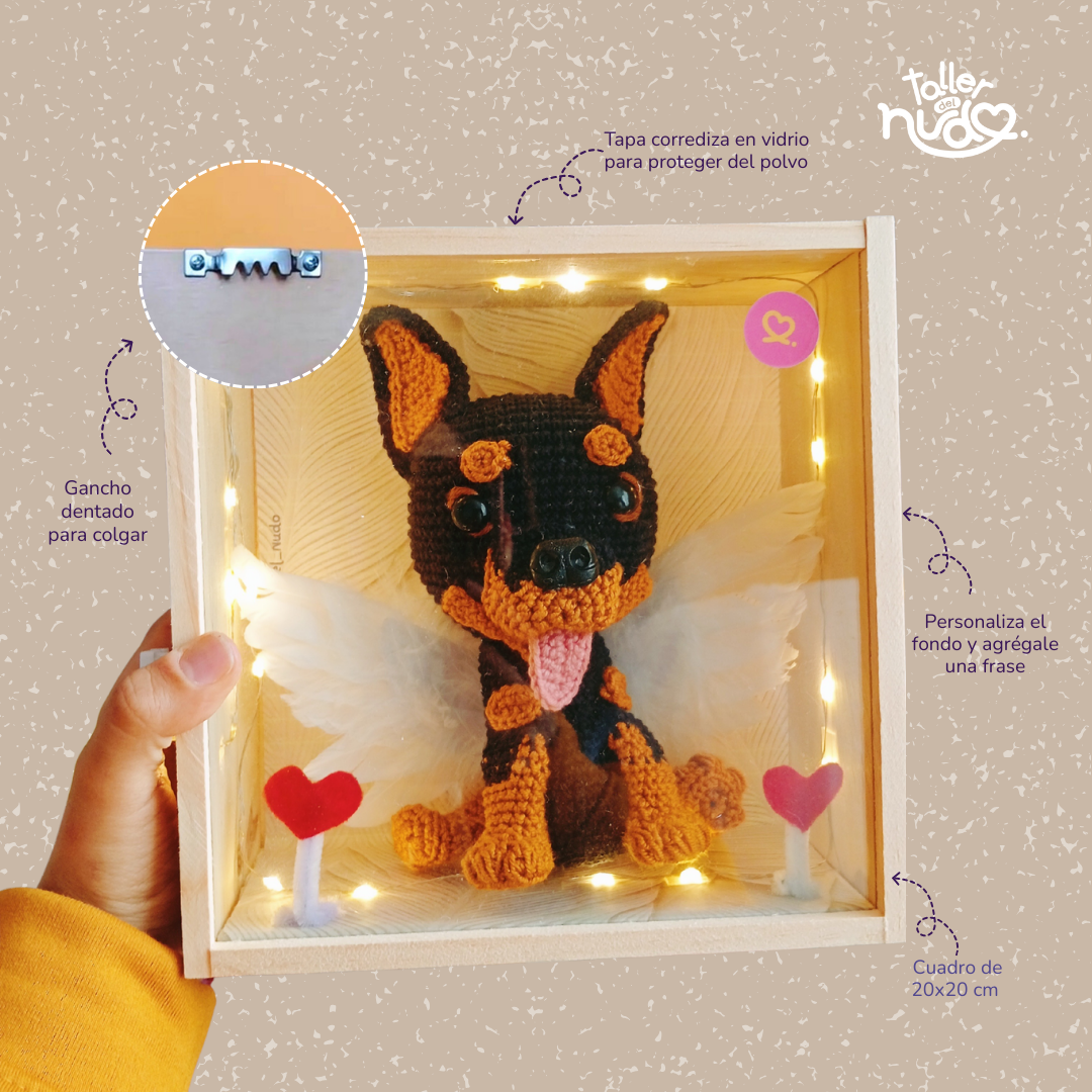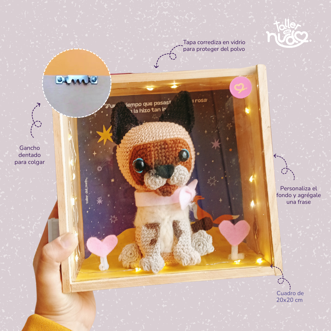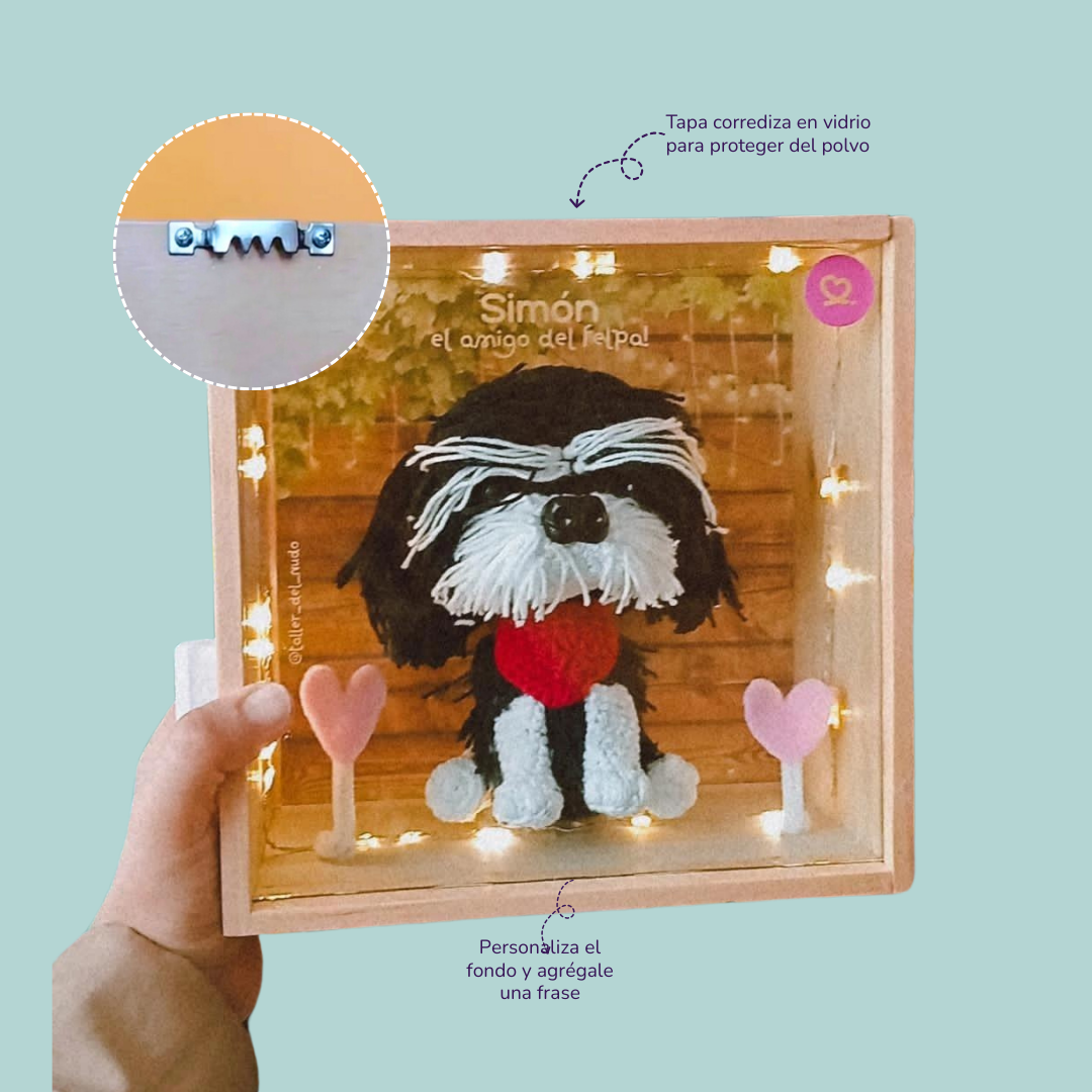 📸 Solo sube tu foto favorita de tu peludito y nosotros nos encargamos del resto. Tejido 100% a mano cuidando cada detalle para capturar su esencia. Perfecto para decorar tu escritorio, repisa o regalar a alguien que ama a su bebé peludo.