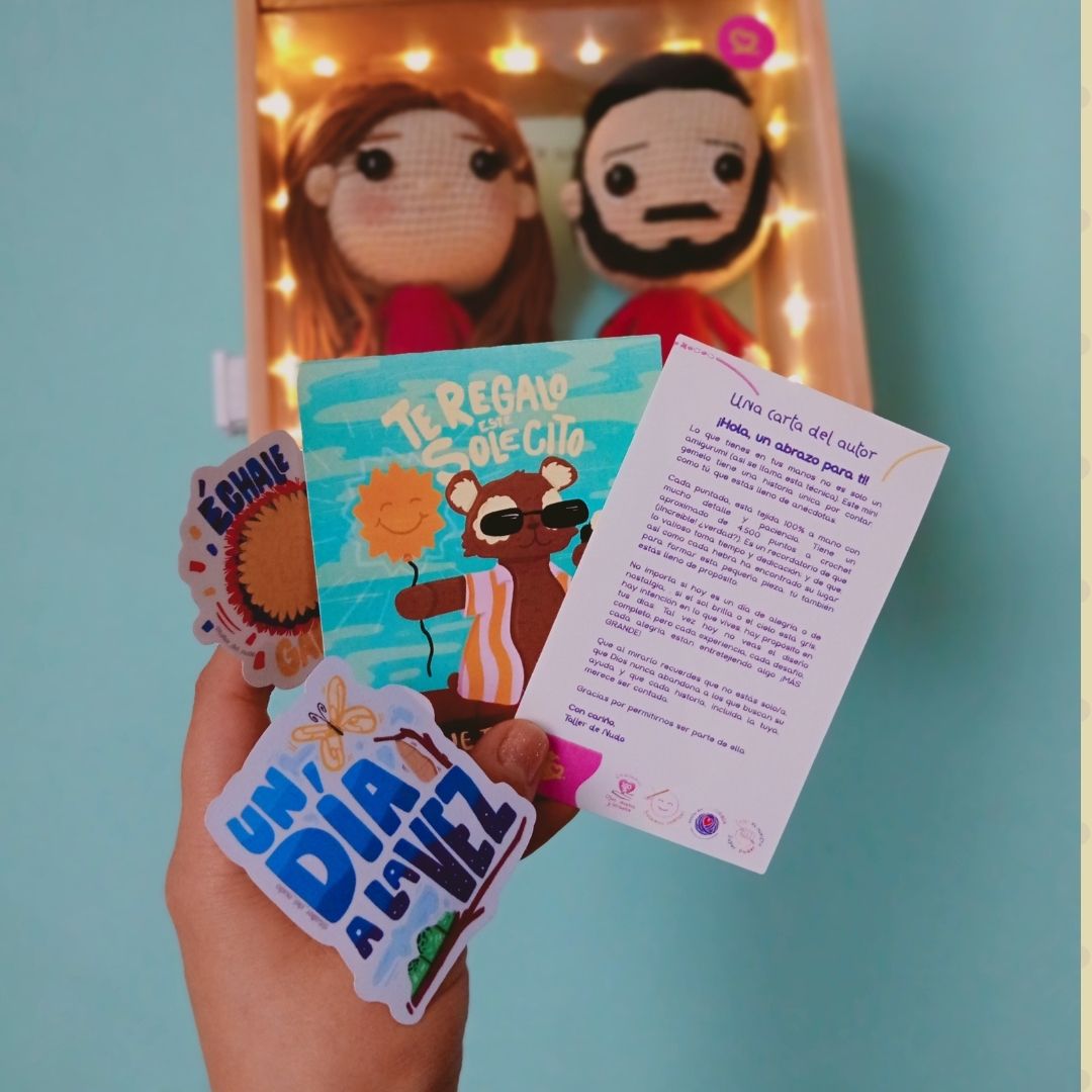 - Incluye postal para personalizar una dedicatoria.